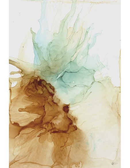 Watercolor painting in turquoise and ocher tones, ideal to combine it with one or two others. Design by Marta Castet Bellocq