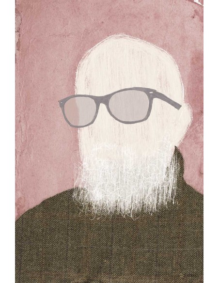 An illustration with a hipster silhouette, in natural tones with a touch of color in the background. Reproduction of the work of Bruno Vázquez.