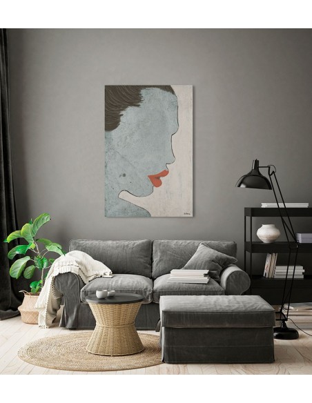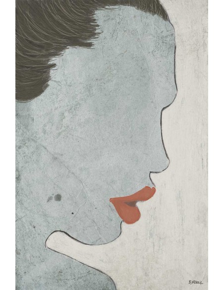 A youthful portrait in natural tones, with a spark of color on this girl's lips. Reproduction of the work of Bruno Vázquez.