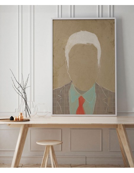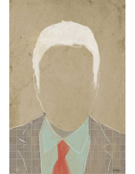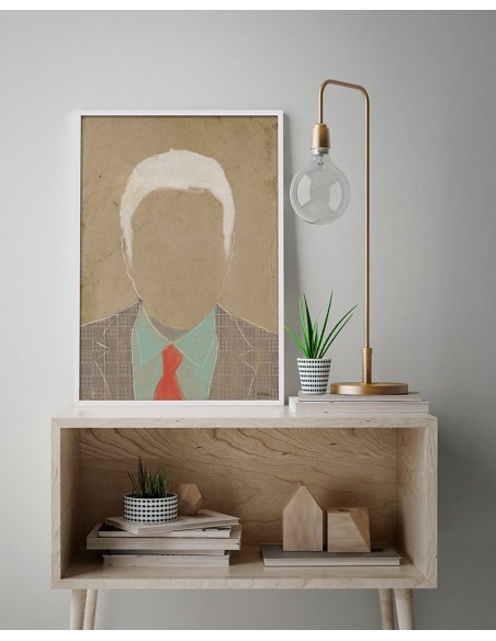 A male portrait against an earth tone background. Reproduction of the work of Bruno Vázquez.