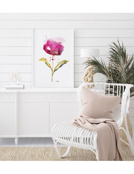 Picture of a beautiful flower in the foreground and pink tones. Reproduction of Bruno Vázquez's design