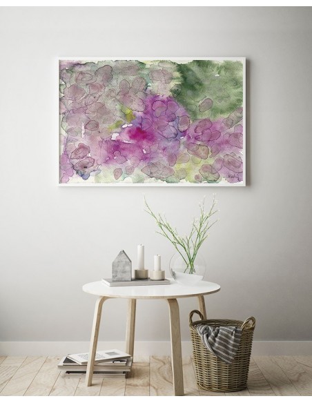 Floral abstract landscape where the stains of the painter Marta Castet Bellocq suggest a floral landscape. Picture printed from the artist's original