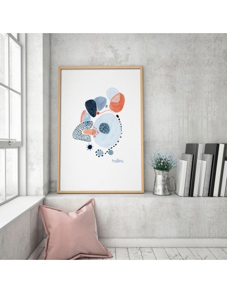 Abstract "Samby" in blue and coral. An abstract of curved spots reproduction of the work of Maria Peletier