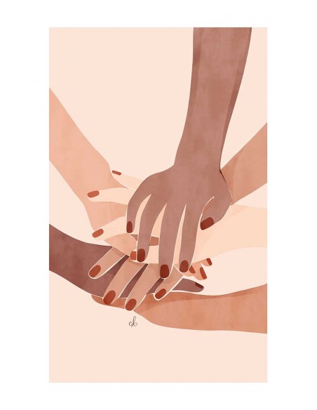 The girls are warriors. An illustration of hands coming together and displaying sorority. An original design by artist Chloé Lamothe.