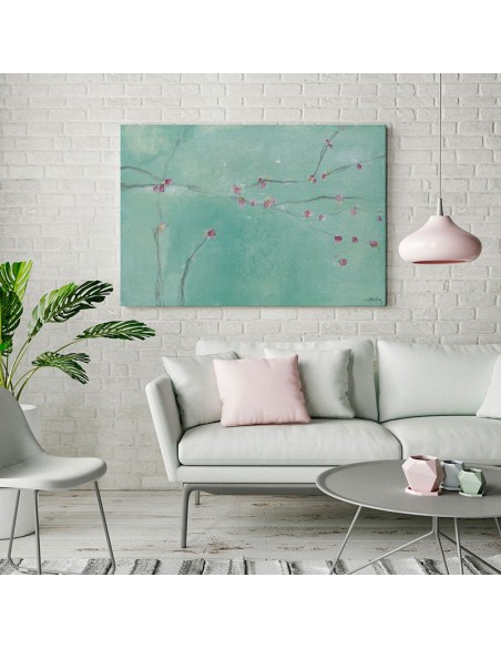 Abstract painting that reveals small pink flowers. Artist: Marta Castet Bellocq