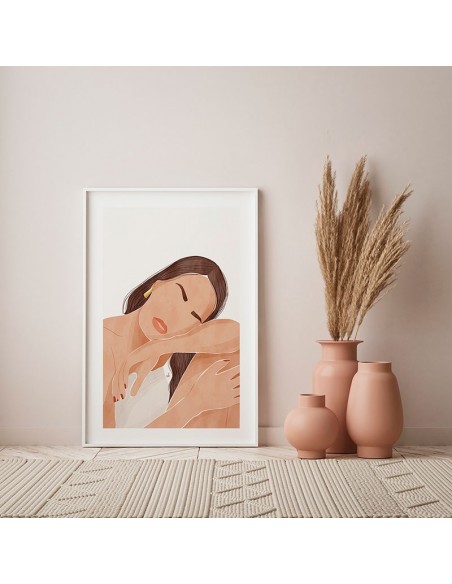 Portrait of a young girl with her head resting on her knees. A detailed design by artist Chloé Lamothe.