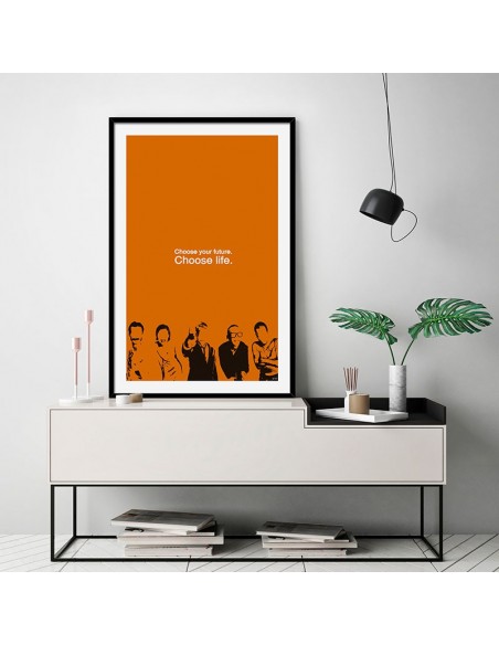 Reproduction of the work of the artist Vincent Hede. Decorative painting Trainspotting 2. Silhouettes with the slogan "Choose Your Future. Choose Life."