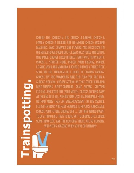Reproduction of the work of the artist Vincent Hede. Trainspotting decorative painting with orange background. Available in various sizes
