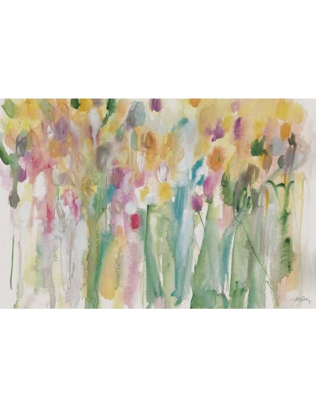 Painting "Coastal Tulips" floral landscape of full color abstract tulip field. Some tulips by Marta Castet Bellocq