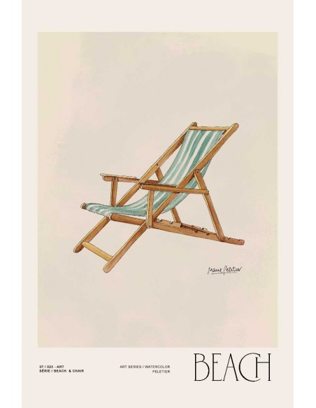 Turquoise striped beach lounger. Design by Maria Peletier.