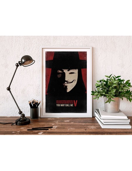For movie lovers, this "V for Vendetta" painting, a reproduction of James Lucido's design. Available in various sizes