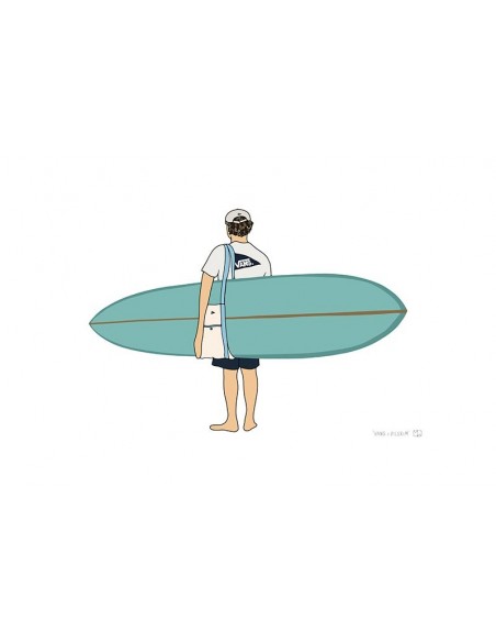 A young boy with his surfboard. If you like this style, don't hesitate to make a composition with the available models. A reproduction of the work of Matthew Wigglesworth.