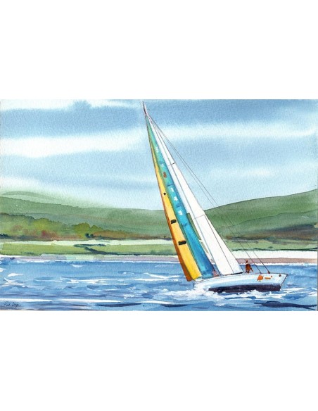 Sailboat landscape on the high seas. Reproduction of Ruth Design's design