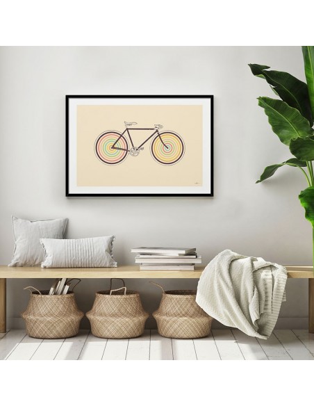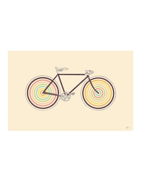 Fun image of a bicycle with colored lines on the wheels designed by Florent Bodart. Ideal to form a collage