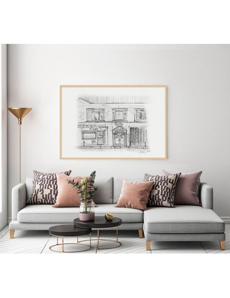 Printed design on quality paper with ecological and environmental inks. Framed with a natural wooden architect of Ayous. It carries glass. Artisically made of Clock S.L. Llimpy the crystal passing a slightly humid cloth. Silver molding