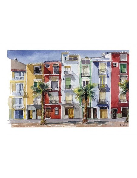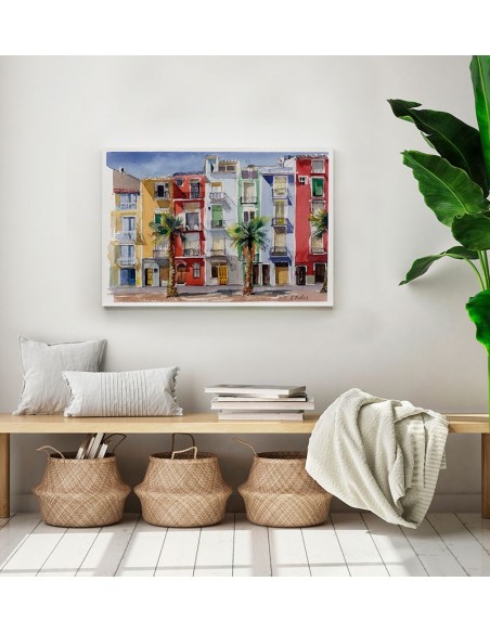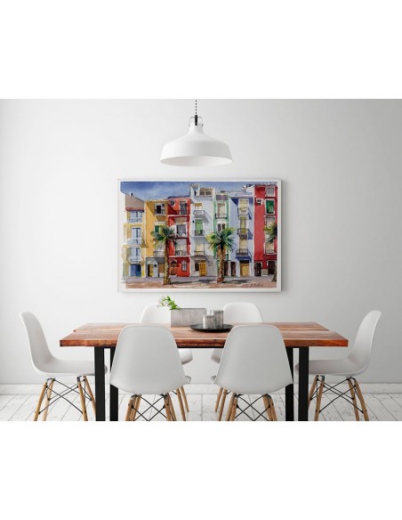 Colorful facade of Villajoyosa, reproduction of Nacha Cassinello.