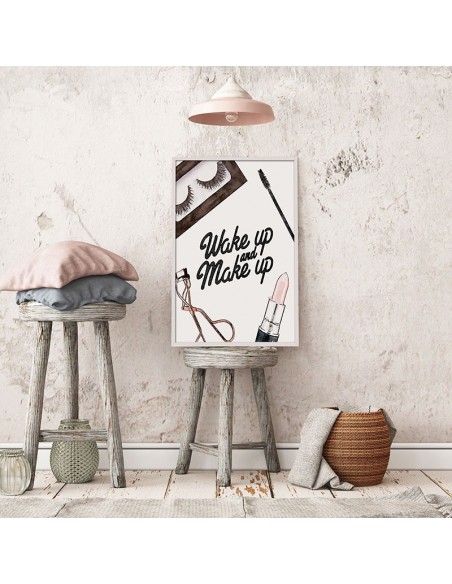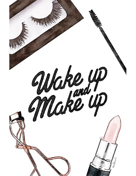 Minimalist design combining lettering with makeup illustration by Amanda Greenwood.
