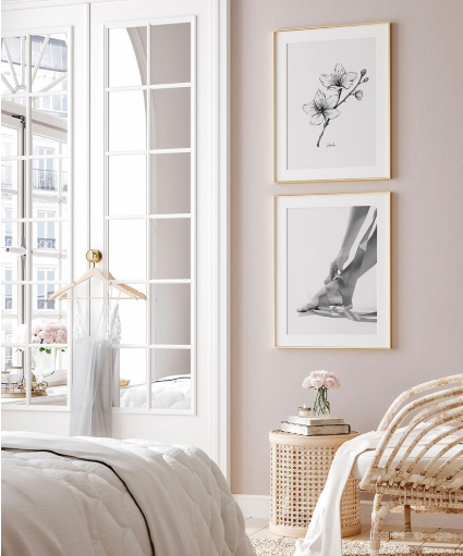 Estilo nórdico: apuesta por líneas limpias, colores suaves y motivos naturales. Las láminas botánicas, las ilustraciones minimalistas o las fotografías de paisajes nevados funcionan muy bien en este tipo de ambientes.