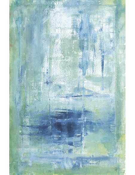 Cuadro abstracto en tonos azules y verdes que recuerdan a la naturaleza, el agua y la vida, diseñado por Marta Castet Bellocq