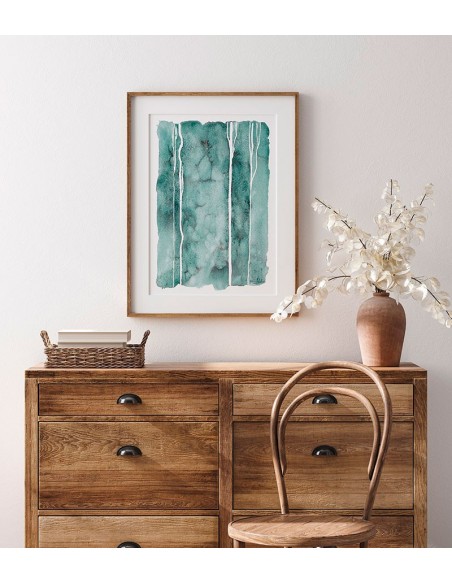 Un abstracto que deja entrever la corteza de un árbol en tono turquesa. Reproducción de la obra original de María Peletier. Disponible en varios tamaños y acabados.
