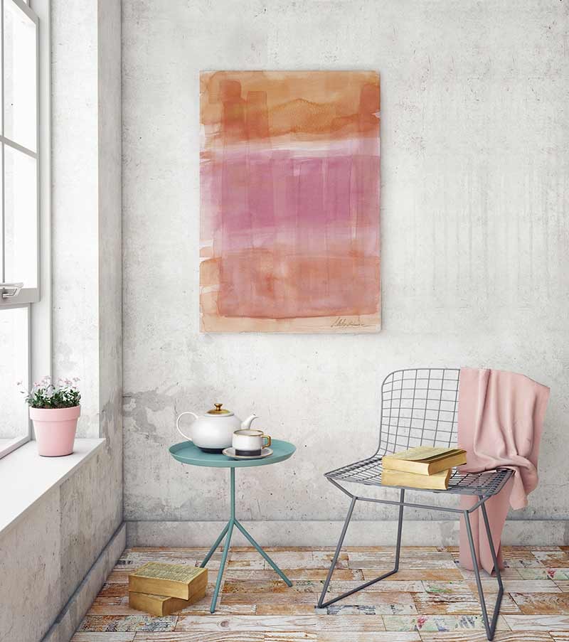 Sumérgete en la serenidad de los tonos pastel con esta lámina artística de estilo abstracto a través de pinceladas de colores que evocan calma. Reproducción del diseño original realizado por el César Ortiz. Ideal para espacios que buscan transmitir tranquilidad. Perfecta para decorar salas, dormitorios u oficinas con un aire moderno y elegante. Disponible en varios tamaños y acabados.
