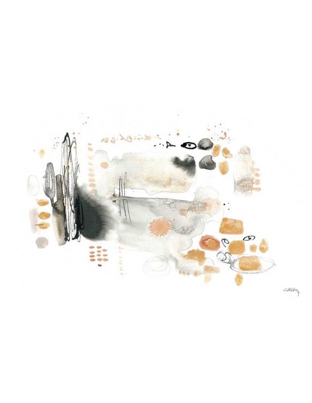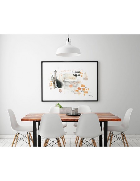 Diseño abstracto en tonos naranjas, reproducción de la obra original de Marta Costero. Disponible en varios tamaños y acabados