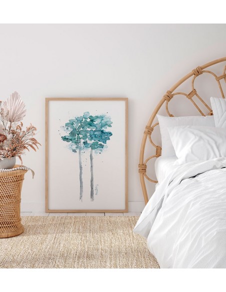 Arbol Peletier en turquesa. Un cuadro de línea minimalista y con un toque de fantasía. Reproducción de la obra de María Peletier.