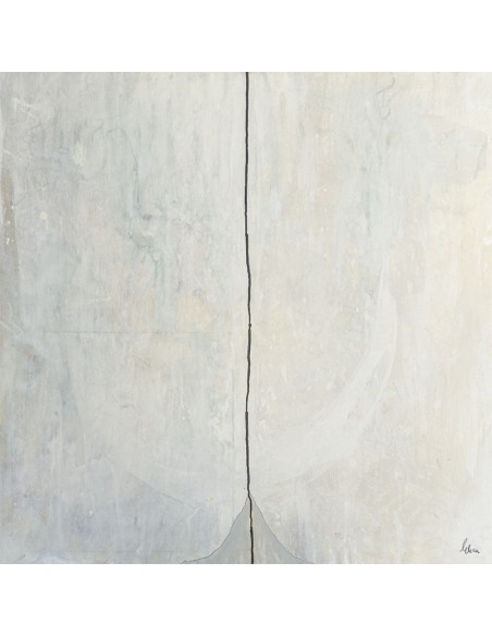 Diseño abstracto compuesto por una línea con trazo negro sobre fondo en tonos blanquecinos. Reproducción de la obra original de Elena Camacho. Disponible en distintos tamaños.