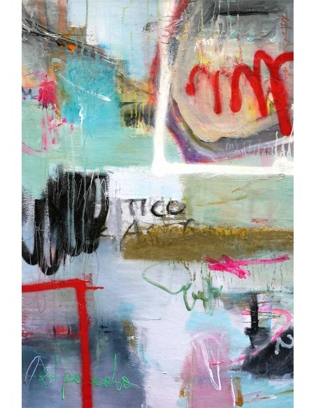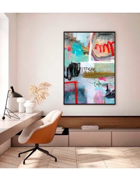 Abstracto con diferentes elementos y manchas cromáticas de potentes colores. Reproducción de la obra original del artista Bruno Vázquez. Disponible en varios tamaños y acabados.