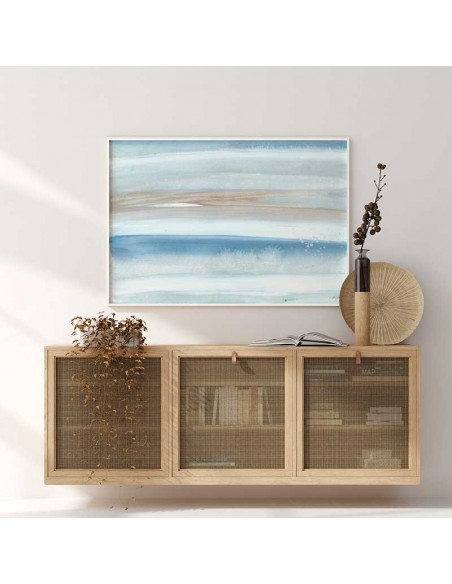 Diseño "Atmósfera" abstracto en tonos azulados y rosaceos, que aporta calidez y elegancia a cualquier espacio. Reproducción de la obra original de Marta Costero. Disponibles en diferentes tamaños y acabados.