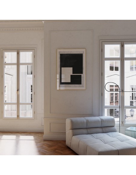 El cuadro “Black Balance” es una obra sobria y elegante. Su composición geométrica, basada en rectángulos que se entrelazan y se relacionan entre sí. El predominio del color negro resalta la atemporalidad de la obra: es moderna, elegante y sofisticada, capaz de integrarse en cualquier ambiente contemporáneo.