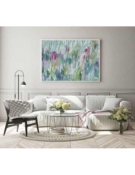 Cuadro "Cañas" de Marta Castet Bellocq. Un abstracto de grandes pinceladas verticales en tonos turquesas.