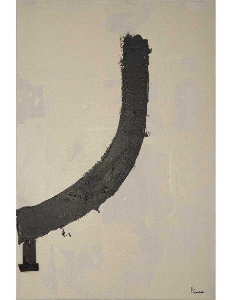 Abstracto "Cimientos" de grueso trazo negro sobre fondo neutro. Un diseño con mucha fuerza, reproducción de la Obra de Elena Camacho. Ideal para formar un díptico con el modelo inverso. Disponible en varios tamaños