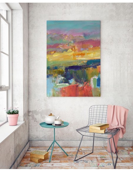 Cuadro abstracto en colores fuertes, reproducción del diseño original de Ruth Design