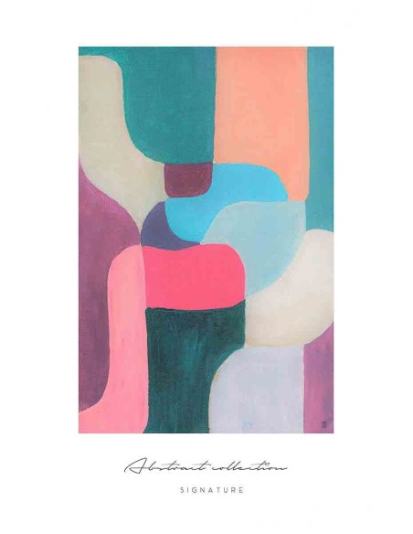 Ilustración abstracta de manchas multicolores formando un puzzle crómatico vanguardista. Reproducción de la obra original de César Ortiz Echagüe.