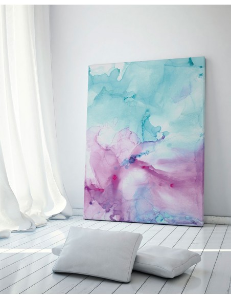 Deja hipnotizarte por la acuarela en este cuadro en suaves tonos azules, rosas y lilas, lleno de matices y peculiaridades. Diseño realizado por Marta Castet Bellocq