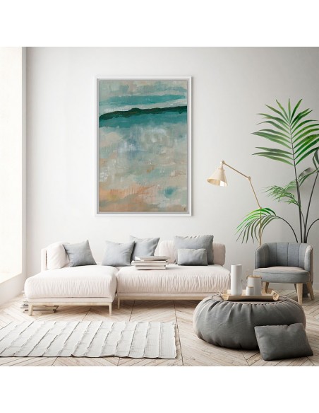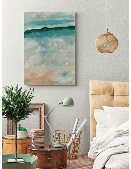 Cuadro abstracto en tonos azules y verdes que evocan al mar. Diseño realizado por César Ortiz Echagüe