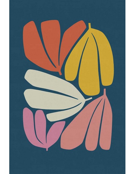 Abstracto de gran fuerza cromática reproducción de la Obra de Maluda. Un diseño donde el color refuerza y potencia las hojas naturales aportando modernidad y una estética modernista.