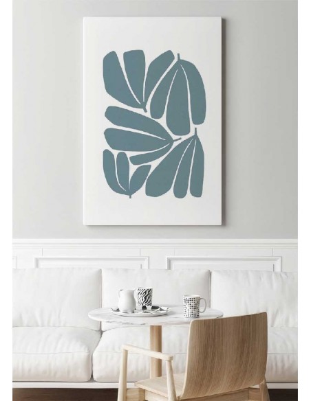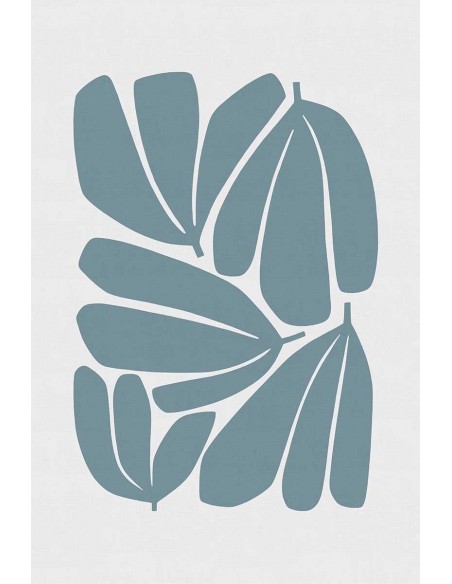 Diseño de hojas abstractas en tonos azul empolvado. Un diseño de naturaleza plana de la artista Maluda. Una estética muy personal disponible en varios tonos, formatos y acabados
