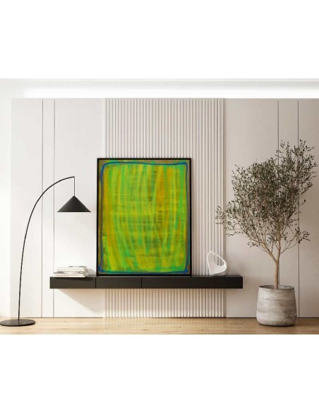 Diseño de colores intensos, potenciando el color verde como protagonista. Reproducción de la obra original Aabstracto perteneciente a la serie "Strata"del artista sevillano Bruno Vázquez, en la que expresa la idea de una capa sobre otra tratando de transmitir la naturaleza cambiante de las cosas. Disponible en diferentes tamaños y acabados.