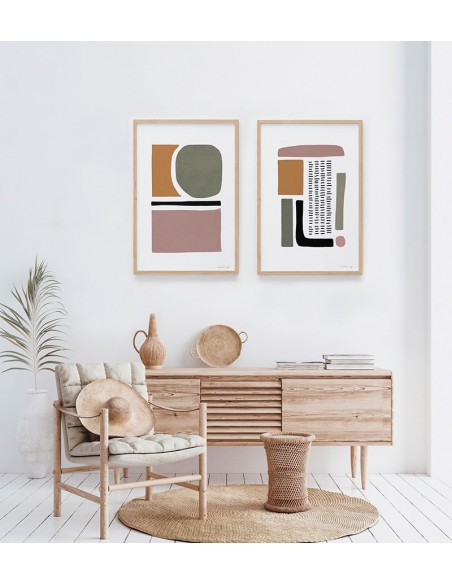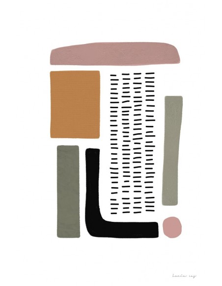 Una ilustración de estilo abstracto en tonos tierra, ideal para combinar con dos o más modelos. Obra de Lucía Cañedo.