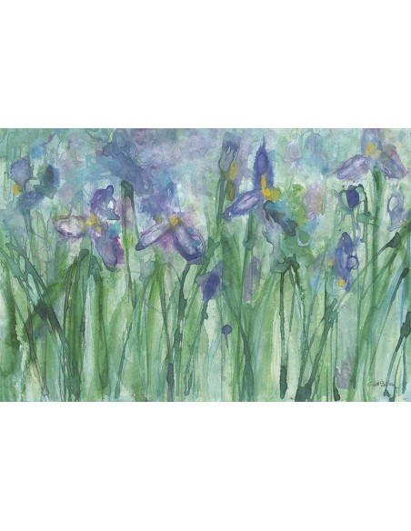 "Iris", en tonos verde y violeta. Para los amantes de las flores. Reproducción de la Obra de Marta Castet Bellocq.