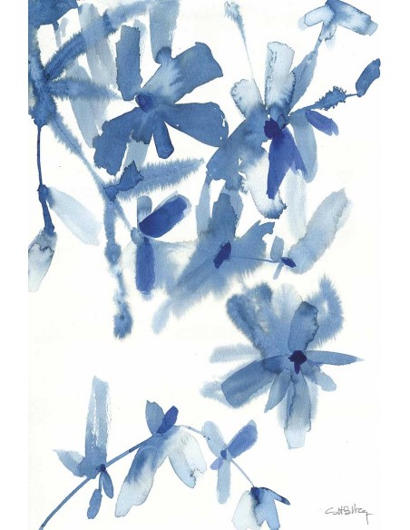 Flores azules en primer plano de la artista Marta Castet Bellocq. Combínalas con "Jardín Azul II" de la misma artista.