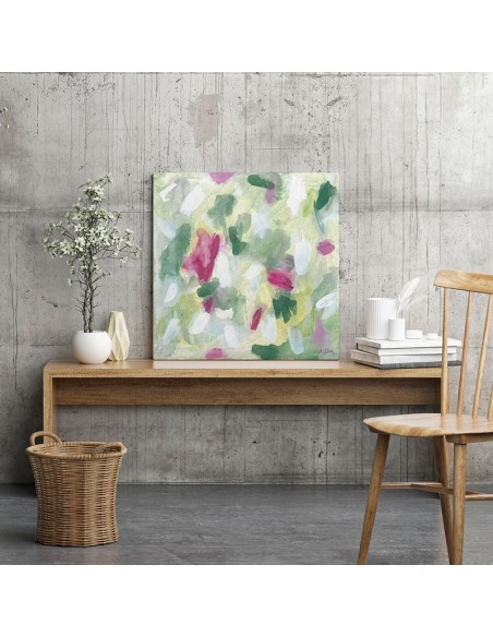 Abstracto floral de grandes pinceladas en verde y rosa, reproducción de la obra de Marta Castet Bellocq