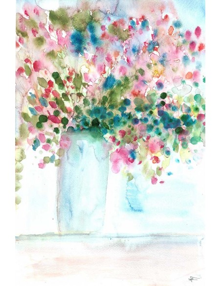 Cuadro de jarrón blanco con flores multicolores. Para dar frescor a tus ambientes. Artista: Marta Castet Bellocq