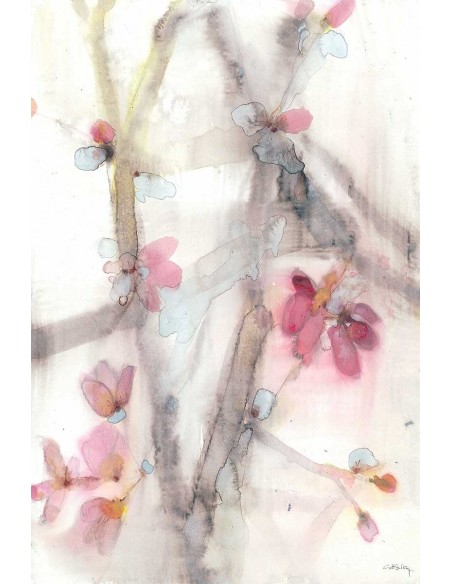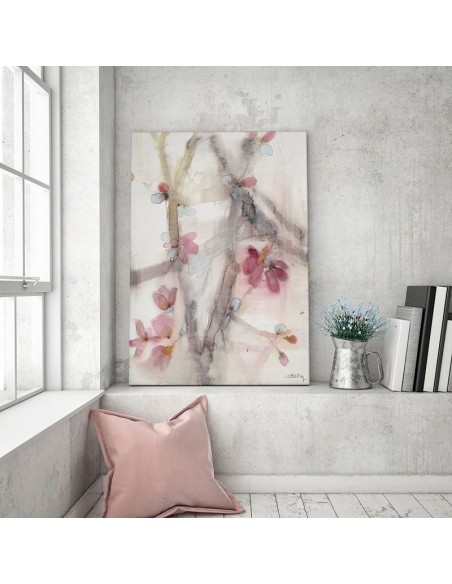 Cuadro "La Delicadeza I" un abstracto de flor rosada sobre fondo blanco. Una reproducción de Marta Castet Bellocq