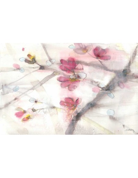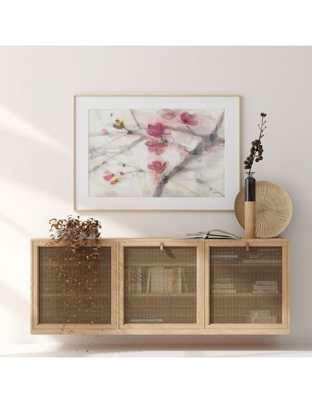 Cuadro "La Delizadeza II" con flores difumunadas en tono rosa, reproducción del diseño de Marta Castet Bellocq