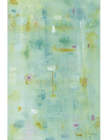 Un diseño en fondo verde aguamarina con unas pinceladas en amarillo, que realzan un espacio dando un toque de alegría. Diseño de Marta Castet Bellocq.