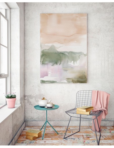 Paisaje abstracto del pueblo "Liendo", reproducción de la Obra de César Ortiz Echagüe. Colores azul y ocre.