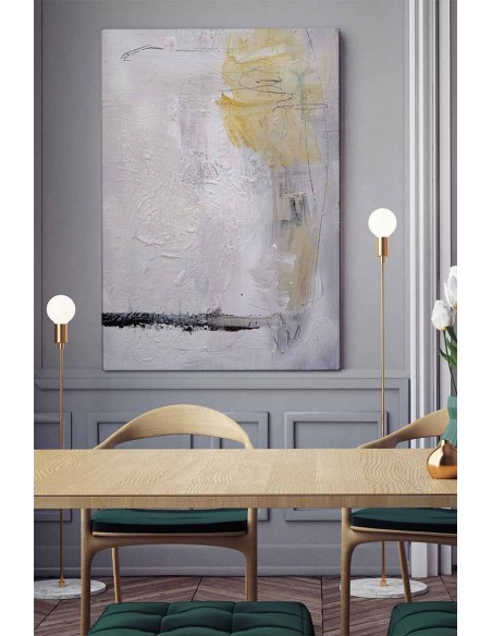 Diseño vanguardista con trazos y manchas cromáticas de color blanco, amarillo y negro. Reproducción de la obra original del artista Bruno Vázquez. Perfecto para aportar una estética modernista a cualquier espacio. Disponible en varios tamaños y acabados.
